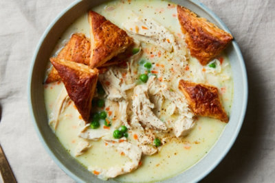 Creamy Chicken Soup with Peas, Carrots, and Puff Pastry Croutons Safeway